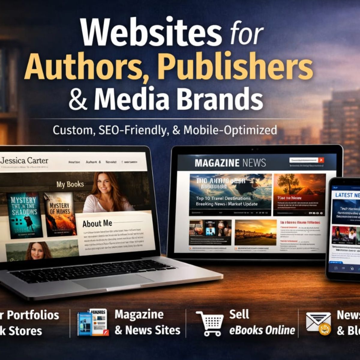 Helping Authors & Creatives Shine Online Custom websites, book services and marketing solutions to get your work in front of readers and clients. Start Your Project How can we help you? We specialize in websites design, book editing, book formatting, book cover design, book illustration, book publishing & marketing BOOK A MEETING Website Design We build professional, attractive and responsive websites for your brand. Book Editing Expert editing to make your book clear, engaging and ready for readers. Book Formatting We make your book look perfect on every device and in print. Book Illustration Unique Illustration that make your book visually unforgettable. Book Publishing & Marketing Professional publishing and marketing to get your book into readers' hands. Help & Support Full guidance and support to help authors succeed online and offline. Portfolio Take a look at some of our recent projects. Websites book designs and promotions crafted for authors and creative. Explore More Meet Our Leadership Lorem ipsum dolor sit amet, consectetuer adipiscing elit. Suspendisse et justo. Praesent mattis commodo augue. Olaifa QudusFounder AJao AbdulbasitBook Publishing Coordinator Adegbenro KayodeBook Marketing Specialist Folarin OlamilekanWebsite Designer Taiwo PamilerinBook Literary Agent Obi FridayAuthor Service Specialist Would you like to start a project with us? Whether it’s a website, book or creative project, we are ready to bring your vision to life. Reach out